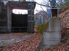 | 発電所上部施設。ここから上への道形は見えてこず、適当に登る。 | 900mで急斜面が現れる。 | 急斜面に対し西を向くと、緩やかに斜上する道形が見えてくる。 | ブルーシートに絡むように道形が上がってゆく。 |