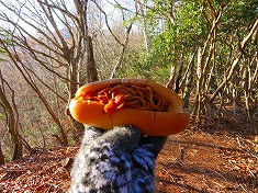 | C冬季はヤキソバパンが特に美味しい。 | 下山途中。中腹以下では道形が明瞭。 | D八幡社公園に降り立つ。 | D吊り橋を渡って・・・。 |