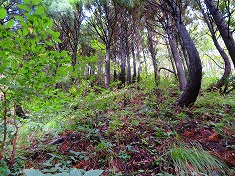 | 上に行くと下草が無くなる。 | A天川山 | A岩坪山にあったのと同じリボン。 | A輪島港が見える。 |