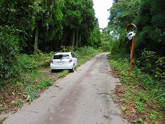 林道を見下ろす場所からの下りは、木々に掴まりながらサルのようにして降りてゆく。車に戻り東に180mほど走ると枝林道の分岐点があり、1台の車が停まっていた。男性がおり、近づいてきて私が久手川地区から来たことに驚いていた。「通れたけ??」と半信半疑の様子。その反応には、通ってきた自分が一番判る。「大分大変でしたが通れました」と返す。「こないだの台風の影響で通れんようになったんや、この先鉢伏山側へも高州山側へも抜けられん、テープ張ってあれんて」と言う。「ところで旦那さんはどこから上がってきたのですか?」と聞くと、南側を指して「下からや」と言う。当初のアプローチで来れば一番楽だったよう。「あんたの車じゃ、下(南)降りるんが一番や」とアドバイスをもらう。