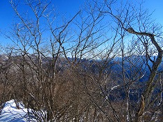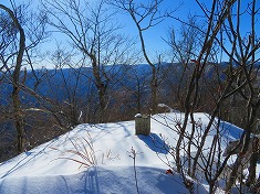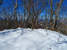 振り返る。「海から一番遠い場所」の道標が上がってきていることから、北側からアプローチする方が、道を伝えるよう。冬季の核心部は、右の耳の西尾根と小唐沢山の西尾根。ここを思うとアイゼン携行は必須となるだろう。また、横見山を経ての榊山までの往復で楽しむのなら、スキー利用でも楽しめる斜面であった。広い尾根が多くスキーでも快適そうに見えた。右の耳と小唐沢山を目指す場合は、無積雪期の方が無難だろうとは思う。それでも、雪があり気持ち良かった。少し、いやだいぶヒヤヒヤさせられ、緊張感をもって安全に歩けたとも言える。