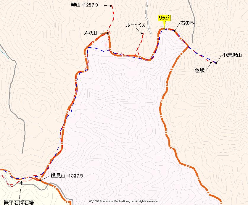 右の耳 1210m 小唐沢山 1300m