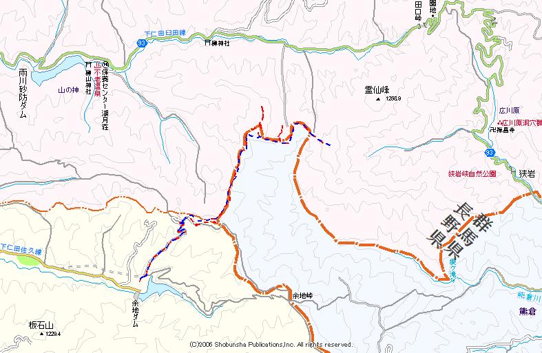 朝の挿し餌が終わり、ようやく少し距離のある場所に行くことが出来るようになった。とは言ってもしばらく近場の図面しか見ておらず、「山と高原地図・西上州」の西側に位置する県境の山を目指す。横見山と小唐沢山。北の「海から一番遠い場所」へのアプローチ道を使おうかと思ったが、木曜日に降雪があったので北側は深く寒い印象があった。ここは南の余地ダムから上がる事にした。