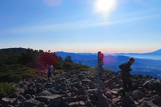 西岳到着。御夫妻らしき方が休憩されており、こちらに山頂を譲るように富士見側へと下山して行った。ここも展望はいいが、編笠岳を体験してしまうと、ここの展望はかなりグレードが落ちる。南に同じ南アルプスが見えるが、若干の角度違いで編笠山からの展望の方が勝る印象であった。持ち上げた秋映(リンゴ)で水分補給し、あとは下るだけ。下ろうかと思ったら東からハイカーが現れ、撮影を頼まれる。出されたのはスマホだった。先ほどヤマレコと言った方もスマホだった。記録写真と割り切った使い方なのだろう。そういう意味では、私もスマホで十分なのだが・・・。