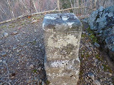 巡視路を進むと小谷の中に入り、その谷の中の道はだいぶ荒れていた。ここも前年度の19号の影響で間違いないだろう。途中には真新しい道標も結わえられていた。下り用とあったが、道標は登りも意識されていた。それは品塩山を示しているものであった。谷ルートが終わりコルに乗り上げると、北の750mピークに何か施設が見える。登ってみたがその施設には一切の表示が無かった。ただ地面には「水」と読める標柱が埋まっていた。
