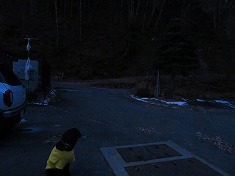 ウルフムーンを見上げながら南牧村を経て上野村に入って行く。前週の雪は日陰でもだいぶ溶けていた。楢原の南斜面で大々的な工事がされており、神行地区側を通過して三岐地区に抜けた。しおじの湯の駐車場に停車。今日は温泉の営業前に戻ってくる予定のためにここに置かせてもらう。まあ他に余地が無いってことでもあるが・・・。6時に到着し夜明けまでの30分ほどをラジオを聴きながら待つ。後ろでは迷犬がまだ暗い外をずっと眺めていた。