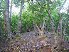 | 南から上がってくる道形に出会う。 | 岩の下を通過してゆく道形。 | 770(760)m付近で道形は北へ | 790(780)m付近でも道形は北へ |
