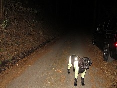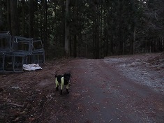 6:35出発。すぐに586高点分岐で、今は二重線路より実線路の方が本道のような雰囲気だった。ここには巡視路標柱が立つ。二重線の方はダートなのだった。そこを右に見ながら曲沢線に入る。すると、こんな場所に強固な木柱の支柱が並ぶ場所が現れる。後で判るが、最上部のお宅の敷地であった。西に進んで行くと、資材置き場になっているカーブの場所で、地形図に描かれない道が谷側に降りて行っていた。この道がソーラーの作業林道であった。上にあがってゆくと、右下に構造物が見えた。山小屋か社か・・・帰りに調査することにする。緩く北に登ってゆく。ここも夏期は蛭がウジャウジャ居るのだろう。流れ沿いの道でもあった。そして地形図の実線路の終点地となる。谷沿いに進む破線路の場所だが、そこは新道の擁壁工事がされており、取付く場所が消失していた。上の方に道形が見えるが、15mほどは斜面を這い上がらないとならない場所になっていた。その代わりではないが、地形図には描かれない新しい舗装林道が続いていた。