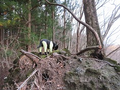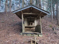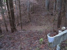 | 実線路の終点地は、林道の作道工事により破線路の山道が削られてしまったよう。 | D社帰り。一切の文字が残っていない社だった。 | 最上部のお宅への入口 | E戻る |