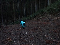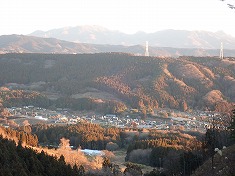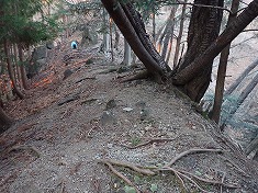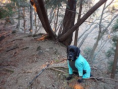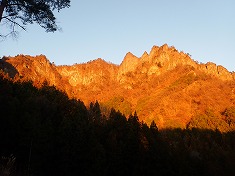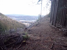 | A大沢川側斜面 | 伐採地上から榛名山系 | 妙義富士のモルゲンロート | 下降点帰り。写真中央で東西に道が降りて行っている。 |