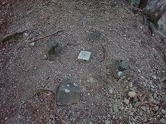 | A防障石がしっかり配置されている。 | A無傷の四等点 | A少し南へと這い上がってみる。南へうまく抜けられそう。 | A記念撮影。 |