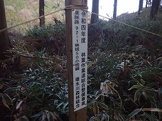 | 530m付近。ここが伐採地の南端。 | 伐採地から見る北側 | 530m付近からの斜面。杭と見出標あり | A株立ちした桜の手前に妙義山麓四等点 |