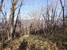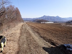 | 畑の南端から。遮るものが無く景色がいい。男山と天狗山。 | I駐車余地に戻る |
