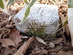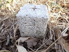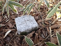 | E三角点の様子 | E大ぶりな標石の三等点 | E二つの角が割られていた。 | E北から見る南側 |