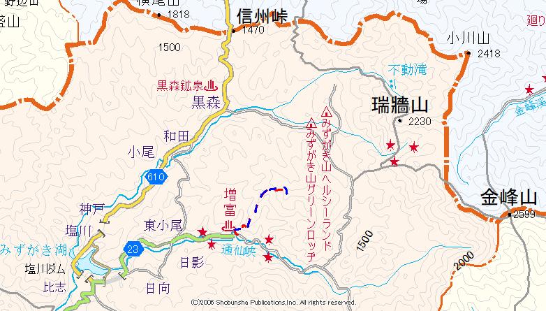 2:30に西上州を出る。27℃もありエアコンを入れてスタートする。10年ほど前までは、窓を開けて冷気を受けながら走れたのに・・・。佐久に上がり141号を伝って川上村に入ると、高原野菜の収穫最盛期であちこちの畑に投光器が光っていた。そしてさすがの川上村、外気温は17℃であった。信州峠を越えてみずがき湖に降り、増富温泉側に進んでゆく。本沢川沿いで涼しいには涼しいが当然湿度は高い。車の外気温計は18℃を示していた。