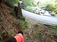 車道に降り立ち装備を解除したら、本谷川で水遊びをする。ただしここの流れは急流の部類であり、遊ぶには流れの緩い場所を選ばないとならなかった。駐車場近くでは速い場所ばかりで、上流に40mほど行った場所の瀬が幾分緩やかだった。そうそう、下草が皆無だったせいか、ダニの付着は一匹も見られなかった。