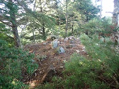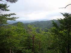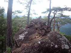 | A西側の露岩にもケルン | A山頂中央部 | A針の山から北西。晴れていたら八ヶ岳が見えるだろう。 | 針の山から東に尾根を行く。尾根道あり。 |