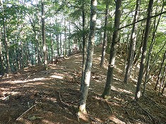 鉢の山から東に降りて、尾根を北に進んでゆく。降りだしてすぐに気づかされるのだが、ここには尾根道が存在していたのだった。杣道として古くから在ったのかもしれないが、針の山が地域の登山の場所になっていることから、魔子側と絡めたコースが存在していたのではないかとも思った。下草はほとんどなく昇仙峡付近の山を歩いているかのような印象であった。伝う人はほとんどいないだろう場所であり、普通なら自然に戻りたがると思うが、分け進む場所は一切なく快適も快適。これはかなり予想外であった。点の記に針の山からも「道形が在る」とあればそこまで思わなかったが・・・。