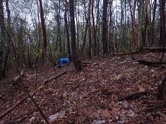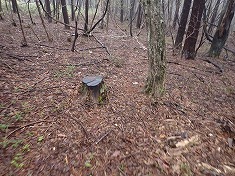点の記では、山道を伝ってとあるので、このまま標石まで連れて行ってくれると思ってしまう。そして北に上がって行く道の方が正解だったかもしれないと、少し惑いつつ西進していく。付近に下草は無く、こんな状況なら道はなくとも楽に登頂できると思えた。進んでゆくと、残念ながら標高1260m付近で道形は消滅していた。そこから西の地形は、道が存在するような地形ではなかった。