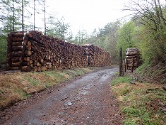 | 林道終点帰り | 須原林道き点帰り。 | 貯木場。高さ4mほどに積まれ城壁のよう。 | Dパノラマラインに出る |