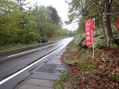 2時に家を出る。往路は軽井沢経由で鬼押ハイウェーを使う。つまごいパノラマラインには東側から入り目的地に着く。しかし余地がすぐには見出せなかった。入山点の林道には大量の丸太が置かれ、その搬出などがあれば林道入口に停めては邪魔になる。東西に林道がループしており、入口付近では双方で邪魔になってしまう。西側林道入口の、わずか西側に南に入る林道がある。その入り口に余地を見出した。ここは地面が緩く泥濘状態なので注意が必要。南に進む林道に車が入るようで、轍は確認できた。すぐ西側に万座ハイウェーの高架があり、一応西にも行ってみたが、停められるような場所は無かった。雨は本降りで、それもあってか嬬恋村の夜明け時間になってもまだ暗かった。貯木場になっていなかったら入って行くが、そこが高く積んであり、ましてや左右にあり、極めて閉所的になっており明るくなるのを待った。