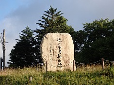 4時に家を出る。明け方まで雨は尾を引き、フロントガラスを濡らしながら白樺湖へと向かって行く。途中のコンビニでは、山に向かうハイカーの姿もありハイシーズンに入っていることを気づかされる。大門峠の南には広い駐車場があり駐車には困らない。石を模したものを乗せたモニュメントと、大きな「池の平開拓の碑」が目立つ場所でもある。すぐに準備に入る。
