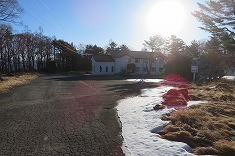 | 小屋は窓もドアも全開。廃業し過去のものになっていた。 | 南八ヶ岳側全景 | ゴルフ場内の立木は伐採されていた。このあとここでメガソーラーが設置される。 | 看板も取り外され |