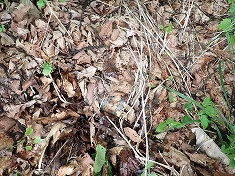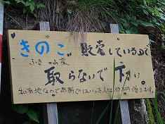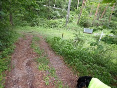 二重線路を南に入るとすぐに、東側に広くテニスコートが造られていた。ただし完全に過去のものとなり、コート北にある施設も廃屋のようだった。コート前が広く、車を停めるには適当だったが、別荘地内への道入り口には立入禁止と出ていた。ダート林道まで戻って余地を探すが適当な場所が無かった。東進から南進に変わる場所に2台分の余地があった。東側に対しロープを張ってあるのだが、ここには「きのこを販売しているので採らないでください」と掲示してあった。こんな場所に人は来ないだろうと思うのだが、別荘が現役だった頃では、訪れる人は多かったのかもしれない。きのこ農家が停める場所なのではと気になったが、ここに停めさせてもらう。