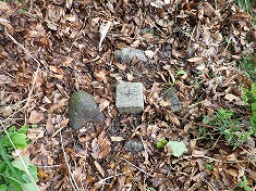 山頂に着くとまずNHKの文字が目に入ってくる。アンテナ群と言っていい場所で、多種多様なアンテナが立ち並んでいた。南牧村は農村地帯で拓けているようだが、電波が入りにくい場所もあるようで、ここで中継して電波を送っているようだった。建物の表示を見るとFMを含めNHKや民放各社が名を連ねていた。これら建物の南西側がこんもりと高く、容易く標石が現れると思ったが、気配がない。ここじゃないのかと、南側を探すも無く、やはり高みの場所と草を分ける。野草が茂り、落ち葉もかなり堆積していた。狙いを定め足で落ち葉を退かすと、四角い人工物が現れた。無傷の二等点だった。四辺をしっかり防障石が守っていた。東の施設に背をつけた状態で、西に6歩の場所に埋設してあった。