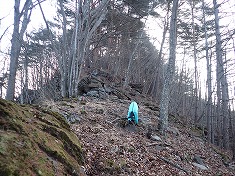 | 北沢の流れがすぐ下に見える。 | 肬水点への東からの取付き点 | B肬水四等点峰到着 | B南から |