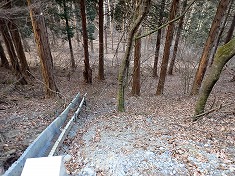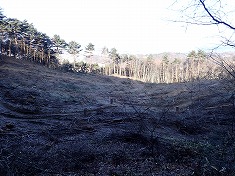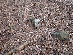 | @墓地の駐車場から | ごく最近の伐採地 | 広域の伐採で、その東端付近。 | 林道沿いには、この御影石が並ぶ。正安寺の敷地のよう。 |