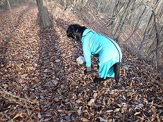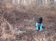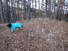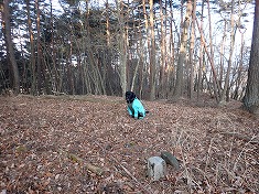 伐採地を見下ろしながら西進し、合葬墓地が墓地の東端で、ここから墓地内を通過し駐車所にも降りられるが、レジャーを楽しむ者が通過するような場所ではないので流石にそれはしない。林道を降りて行き駐車場に戻る。野芝ではあるが、芝生の駐車場で足元が汚れずとてもいい。迷犬も足を拭いた後が奇麗に保たれる。極上の駐車場所であった。