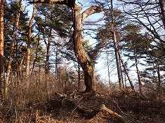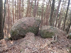 | 巨岩が並び面白い場所。 | C枯れてはいるが、今でも一本松が見られる。 | C加工されたと思われる石がこのように | C起こしてみると、石仏だったと思われる。 |