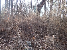 | C松の北西下に標石がある。 | C一本松三等点 | C松との位置関係。少し下がった位置にある。 | C北から。一帯は低木藪。 |
