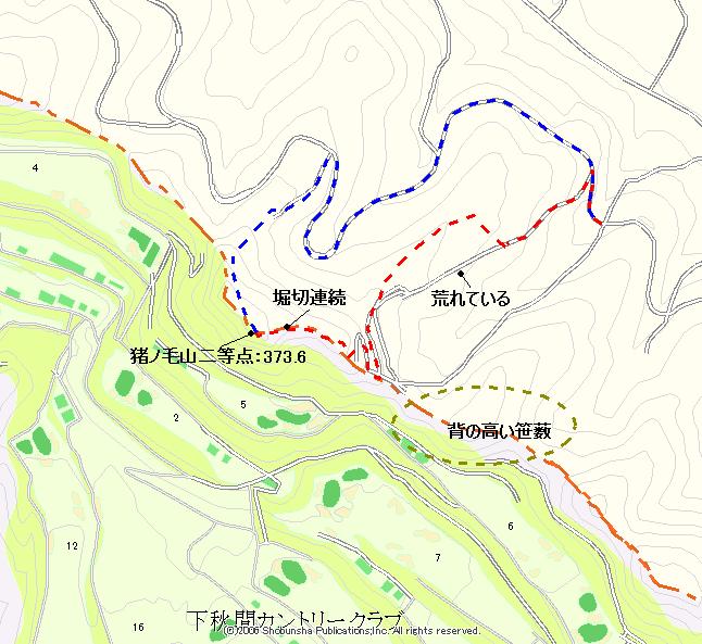下山後に気づいたが、北側に「井ノ下」地区がある。読みは「いのした」であるが、「イノゲ」とも読める。イノゲヤマとなにか繋がりがあるのだろうと思えた。