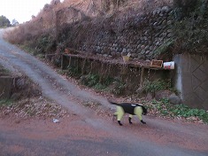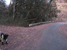 下山は北に降りてみる。標高差10mくらい下るとそこに下からの道の終点地があった。杉林の中を降りて行くと梅林が現れ、その中を抜けて行くと東側に道形が現れた。伝って行くと資材置き場と書かれた門扉が現れ、ここで舗装林道に乗る。東に戻って行くと、途中に林道名が「林道東猪ノ毛山線」と判った。ここが東だったら西も在るのだろうと想像するが、御岳山北麓のは「林道上神線」である。東に戻る途中に窓を断熱材で全閉した不審車両が置かれていた。怪しいこと限りなし。車に戻る。