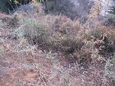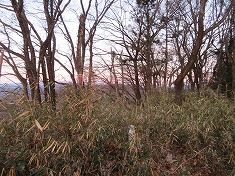 なぜかここはブルドーザーなどで均した跡があり、管理されているようだった。進んでゆくと高崎市と安中市の市界尾根に乗り上げる。ここで元日に行動した東側を見る。そして当日に無理して進まずによかったと思えた。2mほどのシノタケの密生帯で、尾根道があるが分けて進む場所で、行動していれば笹からの粉で真っ白になったろう。全く元日向きではなかったのが判った。その東に背を向けて西に向かう。まだブル道はあり、細かく枝道も存在する。ただし分かれた先15mくらいでほとんどが行き止まりになっていた。