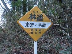 | 北側の道形 | 梅畑に出た | C林道に出た場所から振り返る。ここから入るのが最短。 | 林道名は、林道東猪ノ毛線 |
