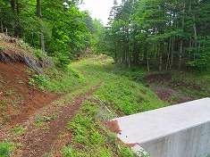 再び緩斜面を降りてゆく。広い地形だが、伝いやすい場所を追ってゆくと往路に見た景色の場所を伝っているようであった。そして丸山谷(仮称)の堰堤脇に出て、丸山橋の所でスバルラインに降り立った。舗装路を戻り、樅の木橋から林道へと入って行く。危険個所も難しい場所も一切なく快適のままであった。