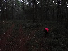 ハイキングにもならない散歩な感じのこの日であるが、朝霧の中に見る牛の姿は絵になり、とても心地よく歩くことができた。黒毛の方は、こちらを気にしつつ牧草を食んでいた。一方のホルスタインの方は相変わらず樹林の中で動かなかった。肉牛と乳牛との差が、こんなところで見えるのかもしれない。1254高点に戻る。