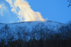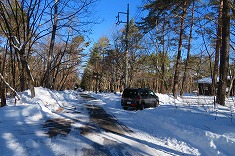 4時15分に家を出る。軽井沢でマイナス8℃で、万山望を上がり北軽井沢に下るとマイナス11℃となった。溶岩樹型の案内看板に導かれ進んでゆく。予想通りの除雪後の状態で、通路を優先に作業しているので民家に前でさえ高さ500mm程の壁になっている。もちろん住まいしているお宅は雪を退かしてあるが、別荘利用のお宅は見て判る状態であった。そして溶岩樹型の場所も御多分に漏れずその状態であった。ダメかと思い少し南に進むと、除雪した雪を押し込んでいるスペースがあり1台分の余地が出来ていた。雪が無ければ道路の場所である。除雪しないであろうと停めさせてもらう。そんな通路がいくつかあり、住居のアプローチ道ではないから除雪不要なのだろうと思えた。