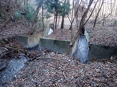 6:28行動開始。ゲートは2つの南京錠で施錠されていた。マニアが開けてしまうのを2つで防いでいるようだった。林道を進んでゆくと、不思議な光景を見る。沢水は人工的な金属樋やコンクリート側溝を流れていた。一本ではなく何本も、それら人工的な水路が長く造られていた。あと気づくのは、このエリアの特徴であるが、下草が全く無いこと。食害で無いのなら、食んだ痕が見られるが、そもそも無いのだった。よって見通しがよく、きれいな山域に感じるのだった。