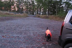 1840mの広みに車を入れエンジンを切る。衛星画像からは、ここから笹原の中に白駒林道に向かう道も見られたので下見に行くが、分け進むような道だった。国道通過の危険度とササ漕ぎの負荷を天秤にかけ、国道側を選んだ。車の往来があるので十分明るくなってからの出発とした。