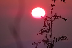 | この日の来光 | 1865m付近の分岐。南西に向かって上がってゆくので使えそうに思ったが・・・。(帰りに撮影) | 途中の分岐。南東側から上がってきた林道幅。 | 林道途中の大穴。林道幅の狭い場所で、この穴を補修しない限り四輪車両は通過できない。 |