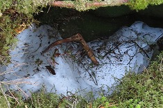 山神沢三等点の標石が埋まる大地に乗り上げる。だだっ広い!! 地形図から判ってはいたが、現地を見てさらにそう感じた。どこを見ても同じような景色。周囲展望も無いので、自分の位置の確認が出来ない。太陽さえも見えない。まず懸柱らしきものを気にして探したが、それら人工物は一切見えてこない。昔の人は、地図とコンパスのみでどうやって点に辿り着けたのだろう。そう思うこちらは、既にGPSを使いながら探索に入っている。測位誤差があるので、けっこう歩き回る。ふと気づくと先ほど居た場所に対し、今どこに居るのかさえも判らなくなり、リングワンデイリングしているような感じとなった。ガスっていたらかなりやばい地形で、標石探しに没頭していたら簡単に迷う場所と思えた。
