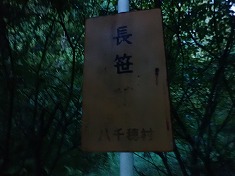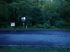 2時半に家を出る。この日も片手運転。国道299号に入ってからは、最近はほとんど駒出池キャンプ場経由で向かっていたが、久しぶりに高原別荘地内を抜けて行く。目指していた場所は、広い駐車場の存在ですぐに判った。あまり車の入った形跡の無い、ザレ石の緩い地面の場所であった。それでも10台ほどは優に停められる広さがある。ヘッドライトを向けてみたが、暗い中では林道の有無が判らない。ここは22号カーブの場所であった。佐久穂町の夜明け時間は4:35だったが、その時間ではまだ暗く、出発前に林道入口を見に行く。すると林道名が判った。木々が覆い被さる中に、「長笹線」と書かれた黄色い看板があった。そして林道入口にはステンレスのチェーンがされていた。藪化した向こう側を見ると、確かに林道幅がある。そして南のカーブミラーがある脇には、歩道幅ほどの踏み跡が見られた。歩行で入っている人が居るようだった。