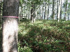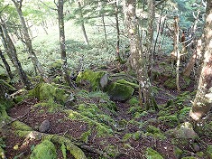 | 1875m付近で八柱山の登山道に乗る。 | B林道からの入山口。 | 流れでクールダウン | C1745高点の場所。分岐を北進。 |