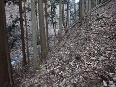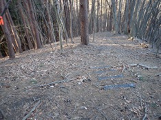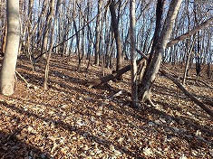 | 巡視路途中920mの展望地。北東側が開けている。 | ハッキリした道が続く。 | 860m付近で道形は東へ向く。巡視路はここから南西へ分かれる。 | 860m付近から降りてゆく巡視路のステップ。 |