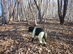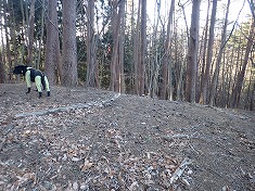 羽田二等点到着。なぜか西のみ小さな防障石になっていた。そして標石はほぼ土に埋まり、掘ろうと思ったら、凍てつき硬く「二」が見えるまでで諦めた。北には白き峰々があり、その手前に吾嬬山だろう円錐形の山容が見える。東に榛名山系があるが、ここからはあまり見栄えはしなかった。標石の南西に黄色い荷ひもが縛られていた。これはフジオカTK氏のもので、何か書かれているが判読は出来なかった。迷犬とヤキソバパンを分かち合ったら東に進んでゆく。