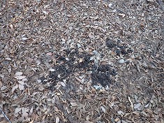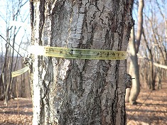 | BフジオカTK氏のリボンが見られた。 | 東側の尾根にはリボンが続いていた。 | 940mの高みにワイヤーが張られたままの木がある。 | 920m付近にクマのキジ場。大量。 |